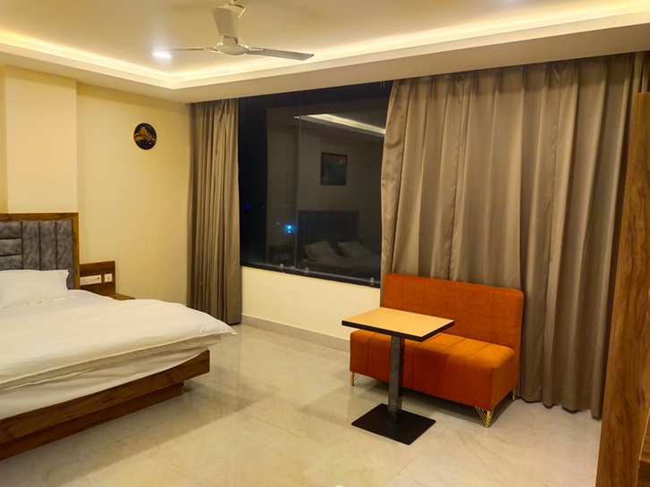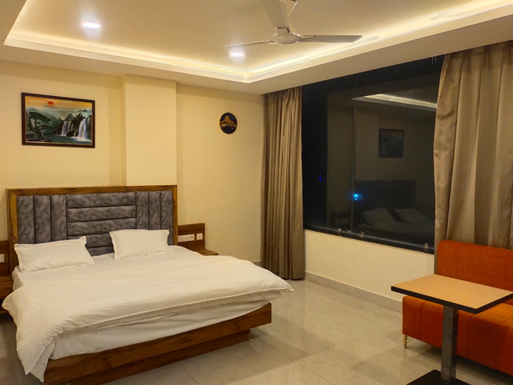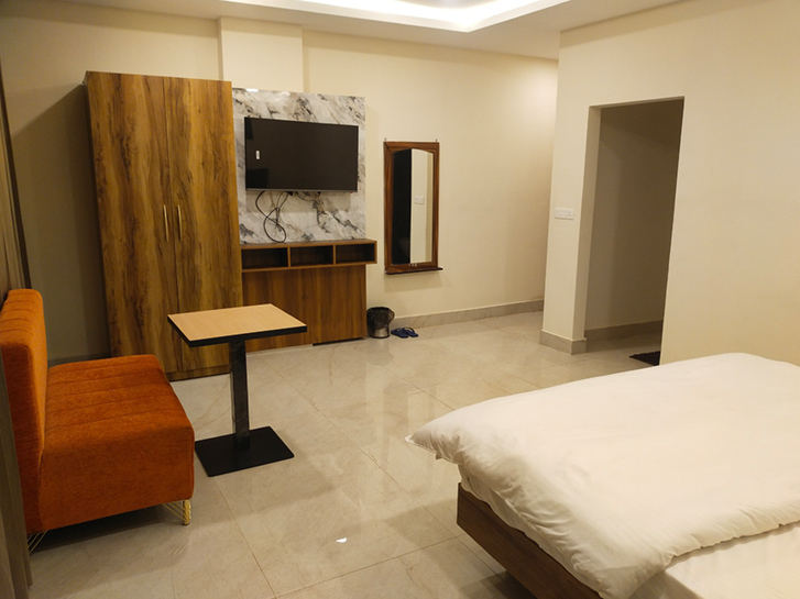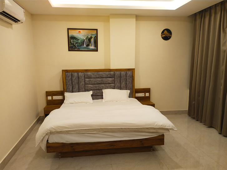 Our Deluxe Rooms are designed for ultimate comfort and relaxation. Featuring modern decor and spacious interiors, these rooms offer a perfect blend of luxury and convenience. Each room is equipped with a plush king-sized bed, a work desk, high-speed Wi-Fi, and a large LCD TV for your entertainment. The elegant en-suite bathroom includes premium toiletries, a rain shower, and soft towels to enhance your experience.